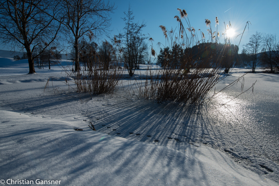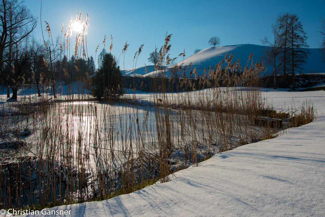 Ein Spaziergang im Winter, begleitet von der eigenen Kamera, kann ganz hübsche Ergebnisse erzielen. So geschehen am 19. Januar im Bereich des Golfplatzes im Winterschlaf. So konnte ich ohne Gefahr zu laufen, von einem fliegenden Golfball getroffen zu werden, die schönen Ecken in aller Ruhe geniessen.