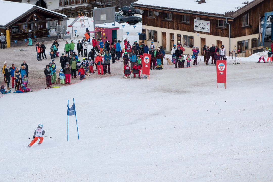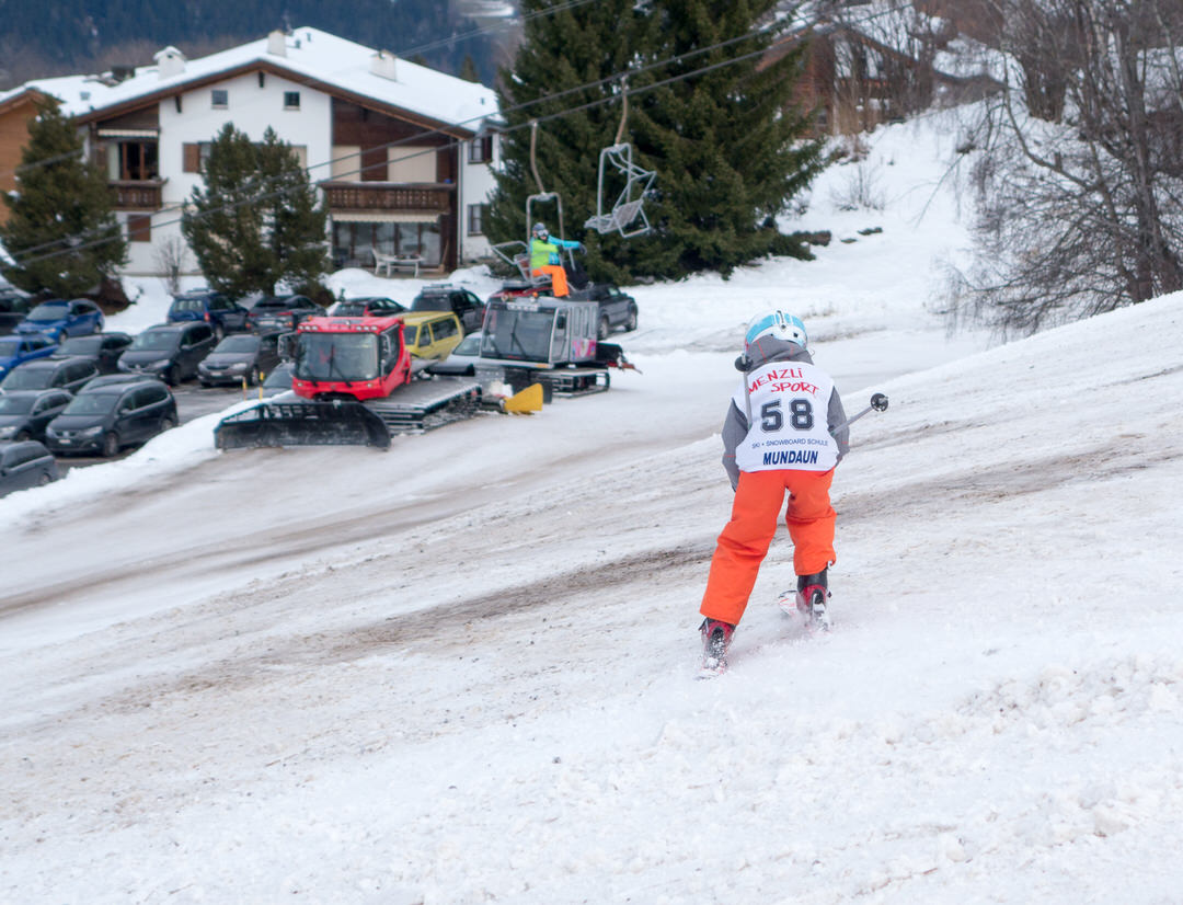 Zum Abschluss der Woche durfte auch das obligate Skirennen nicht fehlen. Als Vorbereitung dazu erhielten die Eltern wichtige Wachstipps. Diese lauteten: Ideal ist das Wachsen Ton in Ton – somit BRAUN.